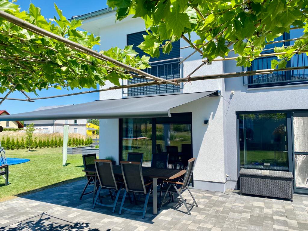 Wie eine natürliche Klimaanlage senkt die Sonnenschutzanlage an heißen Tagen angenehm die Temperatur und kühlt die Terrasse ab. Hohe Lichtschutzfaktoren der hochwertigen Markisentücher schützen Ihre Haut zudem vor schädlichen UV-Strahlen. Von der offenen Bauweise über geschlossene Multisystemausführungen bis hin zur großflächigen Beschattungsanlage bietet Ihnen HEIM & HAUS ein optisch ansprechendes und effektives Sonnenschutzsystem für fast jede Terrasse, jeden Balkon und Freifläche.